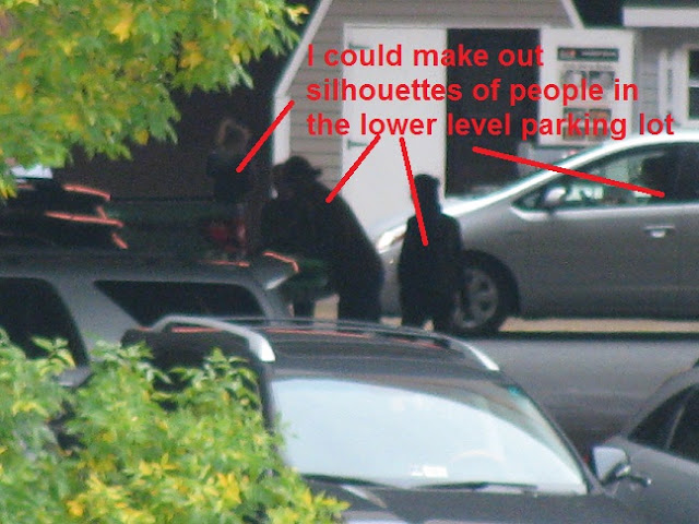 Photo from the treeline at the back of the parking lot across from Home Depot. |